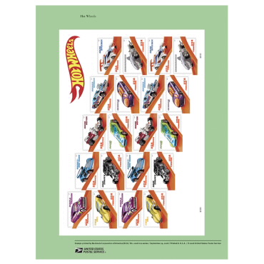 Con todo pronóstico, Hot Wheels a decidido ayudar otorgando arte de algunos de sus modelos más icónicos e inolvidables de su gama de autos. Por lo que ahora, USPS ofrece en su primer panel una viñeta de "American Commemorative Panel (R)" de dos páginas en la cual se narra la historia de la marca de Hot Wheels, cómo se fundó y parte de lo que pudo lograr desde ese momento hasta tiempos recientes, la cual incluye y celebra el 50 aniversario de la misma.